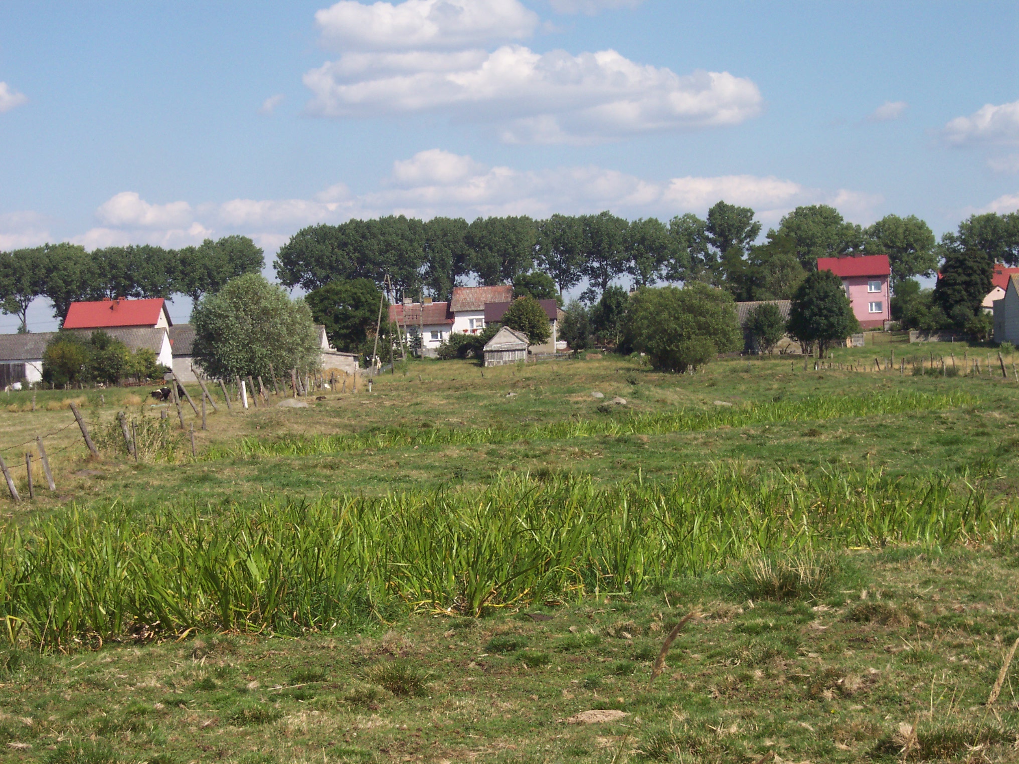 północncego wjazdu do wsi, po wschodniej stronie szosy do