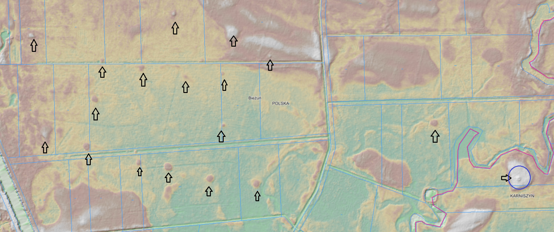 latach 90 XX w. pojawił się wątek kopców na łąkach wokół lasku Wysokie, gdzie