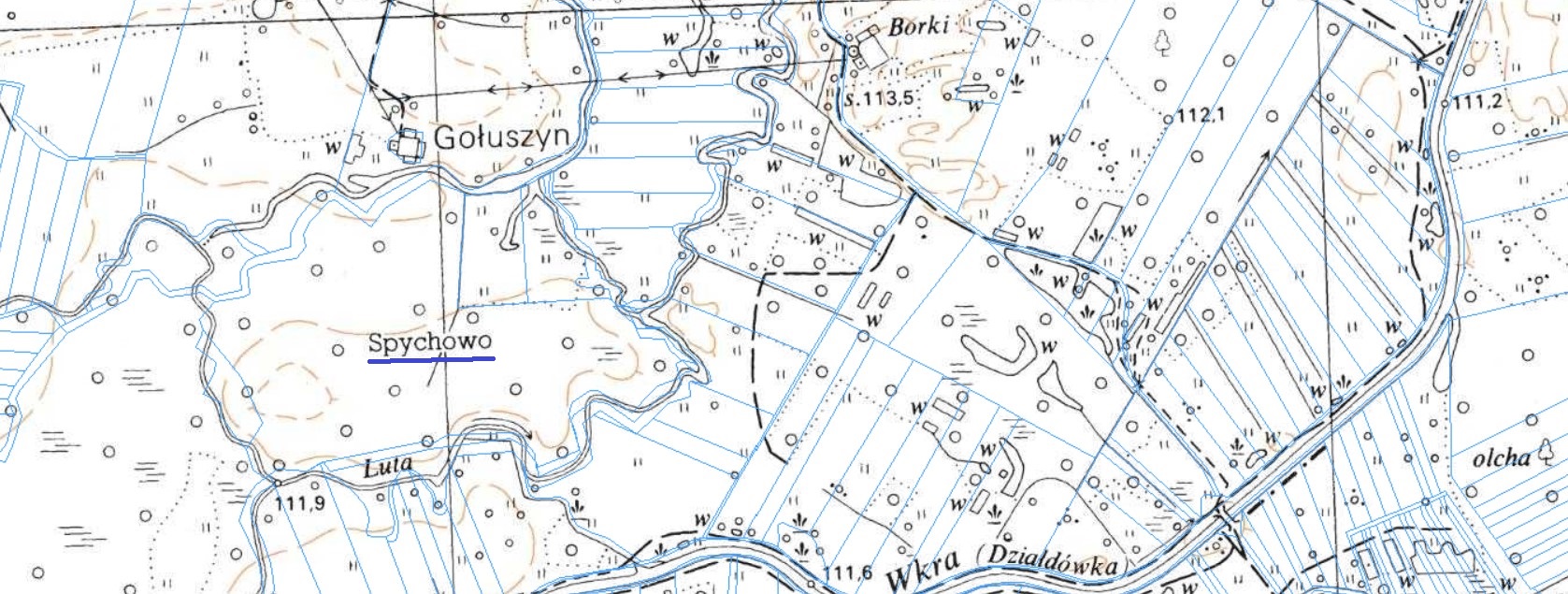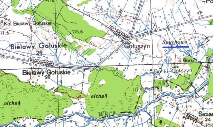 Spychów - na kępie otoczonej zakolami Wkry. Jedną z kęp w