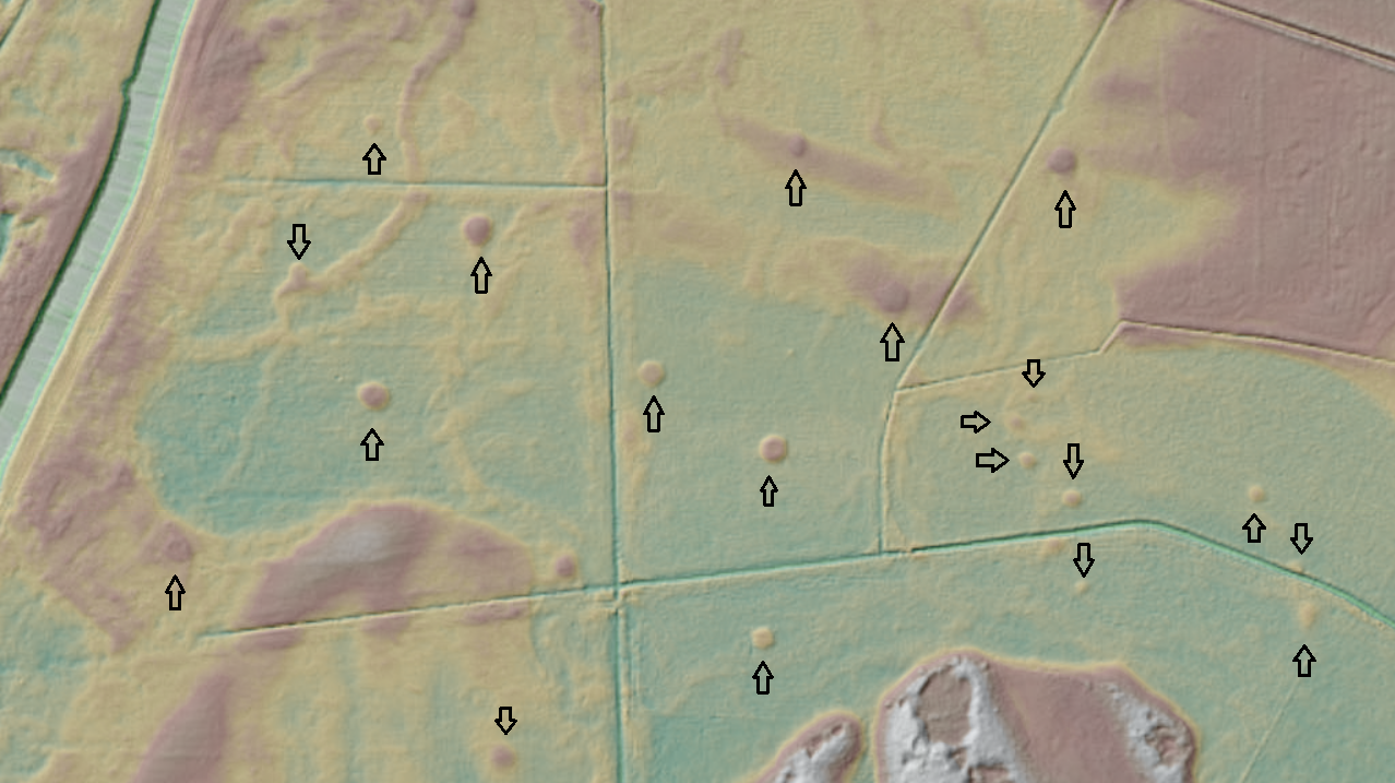 kurhany. Na szczycie wielu z nich znajduje się niewielkie zagłębienie,