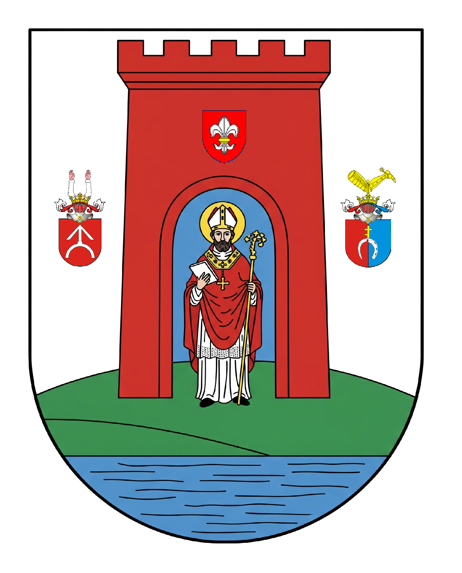 Ok. 2006 r. powstał pierwszy szkic herbu miejscowości nawiązujący do tradycji lokalnych: patrona kościoła (św. Stanisław), herbów dawnych właścicieli (Gozdawa, Ogończyk i Prus III), położenia zamku, wsi i kościoła na brzegach Luty nad mokradłami (podwójny wzgórek nad rzeką) i symboli obronnych miasta i zamku (baszta bramna z krenelażem).