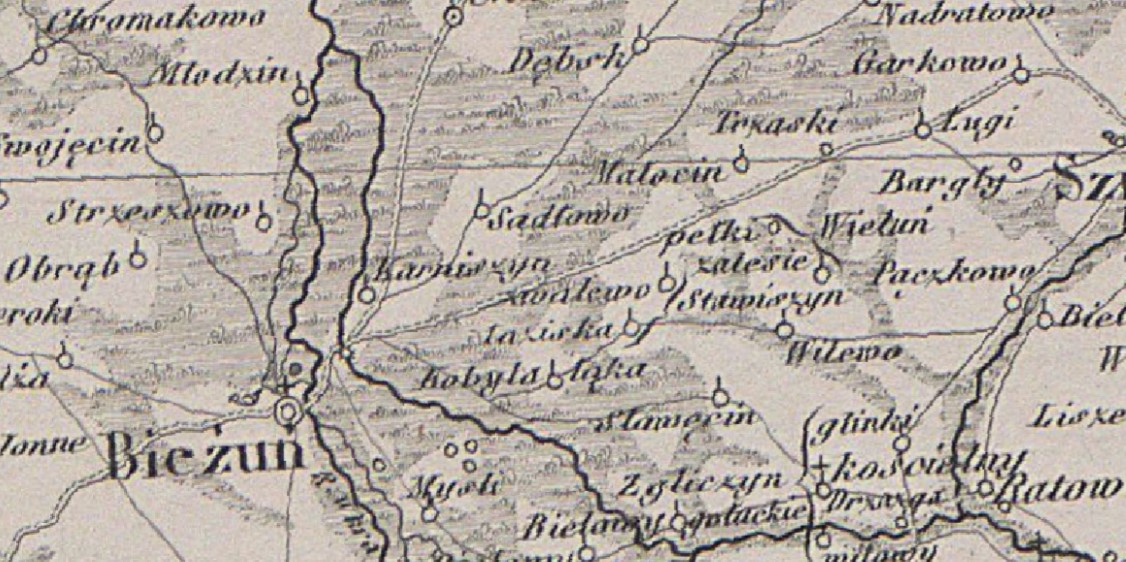 - Plan miasta Bieżunia wraz z okolicami, ok. 1830, link