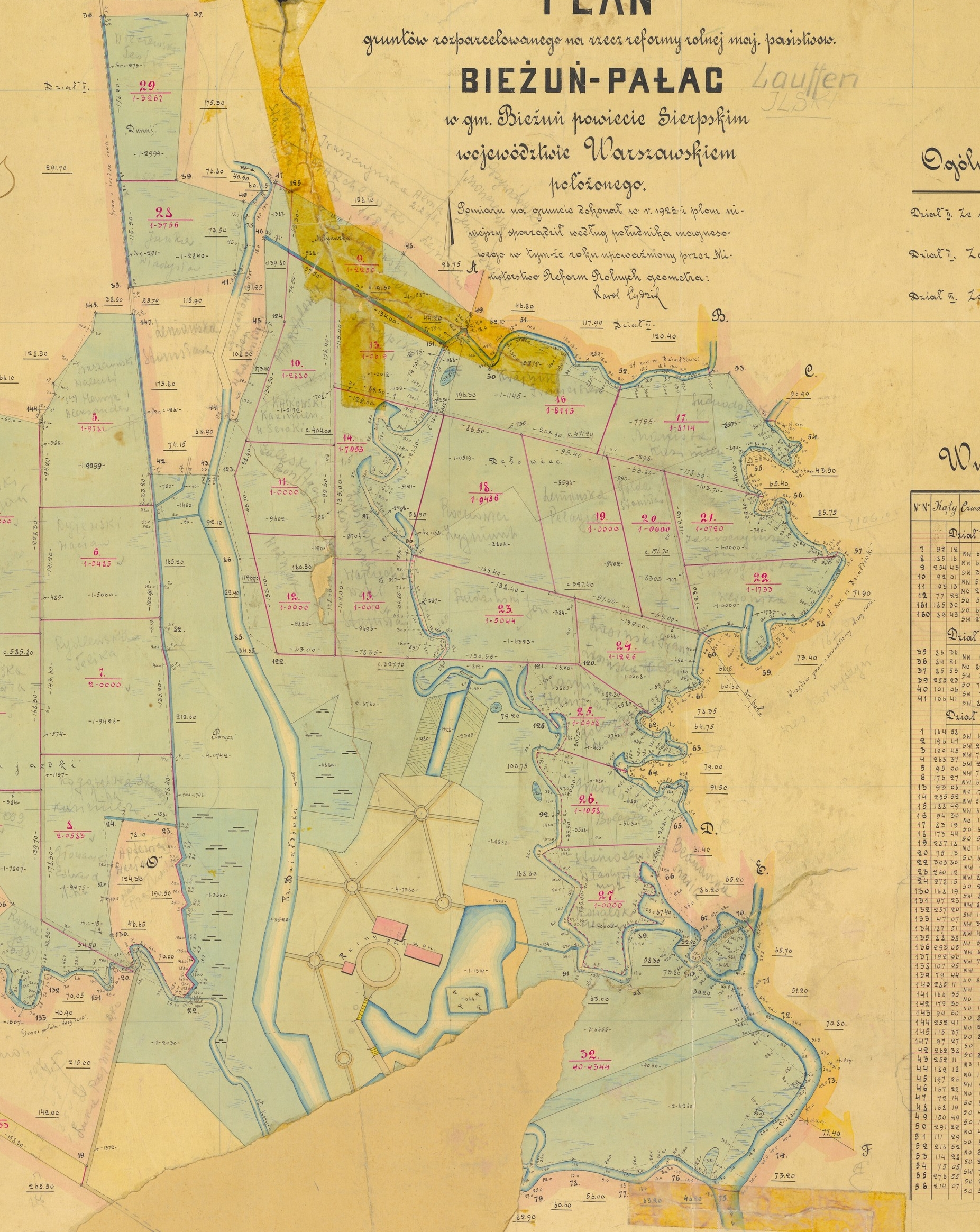 - Plan rozparcelowanego majątku Bieżuń – Pałac, 1928, link