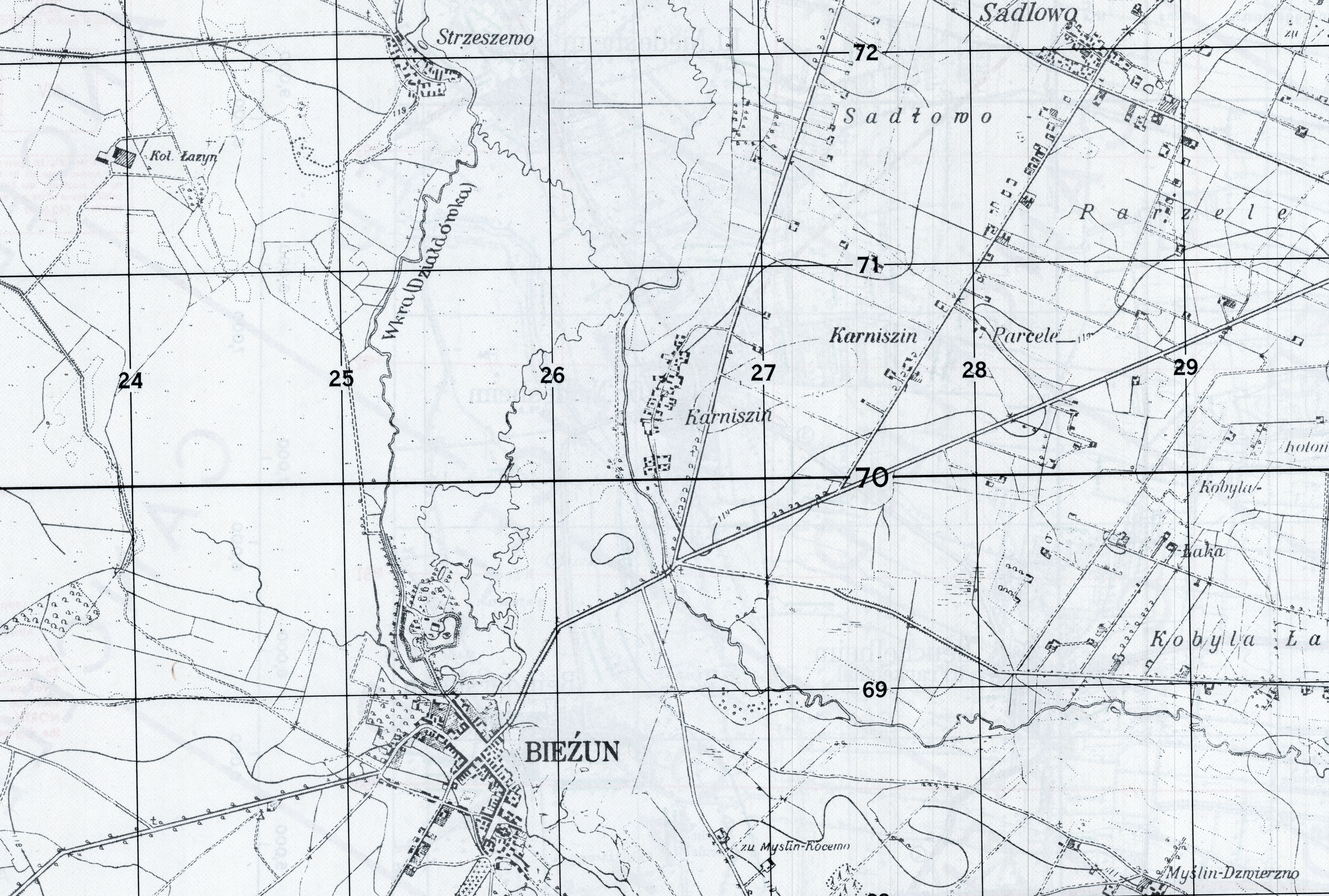 - Plan miasta Bieżunia, Młyn w Karniszynie, 1806, link