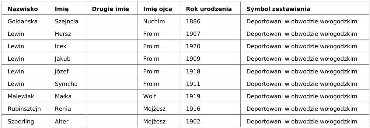 Zeszytów Historycznych z 1998 r., opublikowano niepełny wykaz dzieci szkolnych wysyłanych na roboty przymusowe: